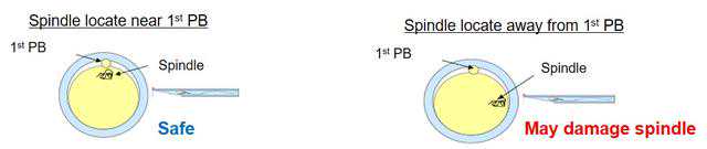 传统常规ICSI操作在向卵母细胞内注射精子时,因受仪器硬件所限,只能选择目镜下可见的第一极体位置作参照(默认第一极体和纺锤体位置相邻)。
