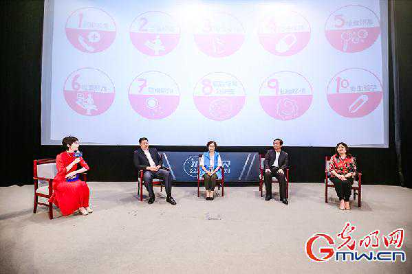 沙龙对话嘉宾(从左至右):主持人,中华志愿者协会文化艺术志愿者委员会主任陈去病,北京宝岛妇产医院荣誉院长、生殖医学中心学科带头人左文莉教授,公共安全管理研究学者崔和平教授,北京协和医院卫生管理学教授、医学法律和伦理专家关健。(任保乾陈利钧/摄)