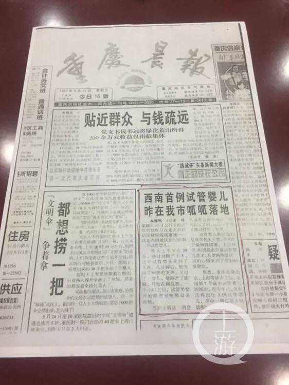 在1997年,人们对试管婴儿的认识停留在哪一步?刘家琪记得,当年,不少报贩围绕在妇幼保健院门口挥舞着报纸,口头喊的是“西南首例试管婴儿在重庆出生了哟!今后不用女人生孩子了!”刘家琪当然觉得好笑,但还是低头走开,“那个年代,真不像现在,大家觉得试管婴儿是个不可思议的事情,又缺乏科学认识。”