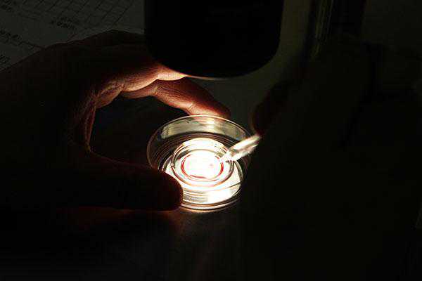 在“摇篮”里,培育胚胎主要采用微滴培养法,也就是1963年Brinster创建的液体石蜡覆盖微滴培养法。目前,该法在人类和动物早期胚胎的体外培养中得到广泛的使用。该方法特点在于: