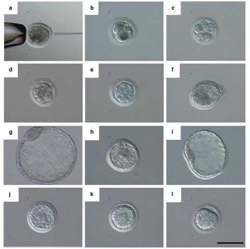 然而,科学家们却不甘心。2018年7月5日的《自然——通讯》杂志刊载了德国柏林莱布尼茨动物园等机构的研究成果,文章标题是《来自白犀牛的胚胎和胚胎干细胞》(Embryosandembryonicstemcellsfromthewhiterhinoceros)。在此项研究中,具有多年濒危哺乳动物人工繁育经验的科学家等人,成功地将冷冻保存的北方白犀牛精子与它们的近亲,南方白犀牛的卵子结合,培育出了具有活性的“杂交”白犀牛胚胎。
