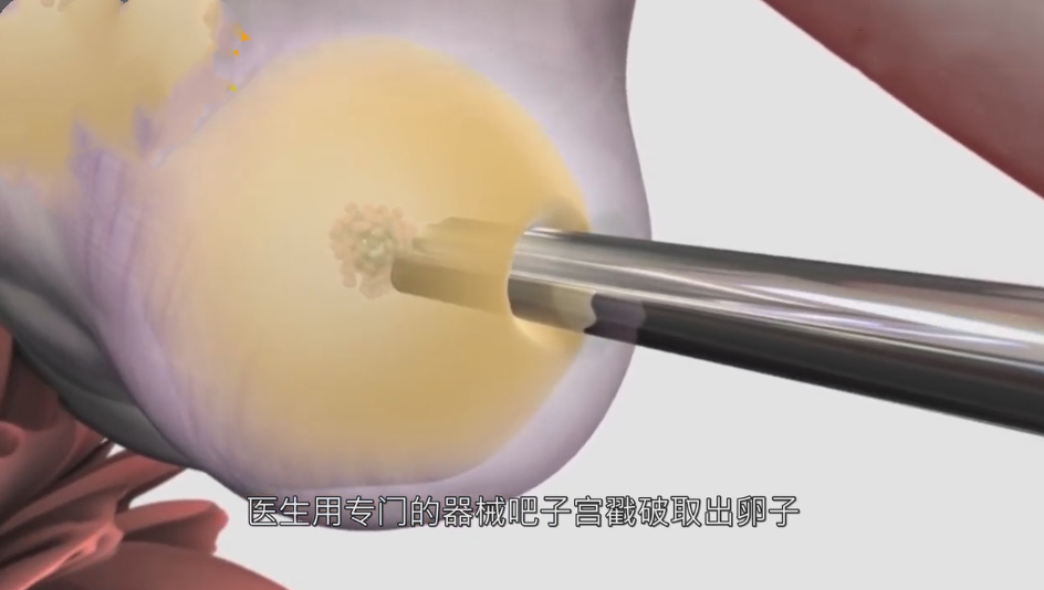 1、首先需要用专门的机械插入子宫,把子宫戳破取出卵子然后再玻璃器皿中进行人工受孕。