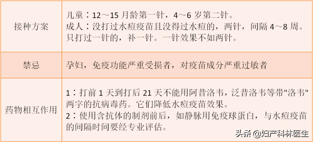 水痘疫苗具体接种时间大家参照下面图片: