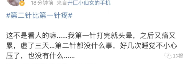 “很多筒子跟HPV疫苗痛感做比较……我只能说之前打的HPV三针基本没留下啥印象……但是新冠第二针是真的差点给我打哭”
