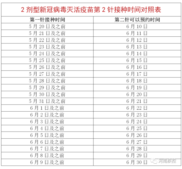 当前河南省正在全力有序推进第二针新冠疫苗接种工作,请参照第二针接种时间对照表。