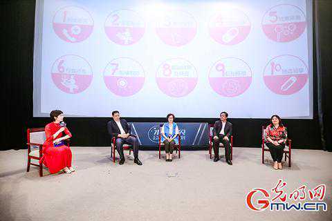 沙龙对话嘉宾(从左至右):主持人,中华志愿者协会文化艺术志愿者委员会主任陈去病,北京宝岛妇产医院荣誉院长、生殖医学中心学科带头人左文莉教授,公共安全管理研究学者崔和平教授,北京协和医院卫生管理学教授、医学法律和伦理专家关健。(任保乾陈利钧/摄)