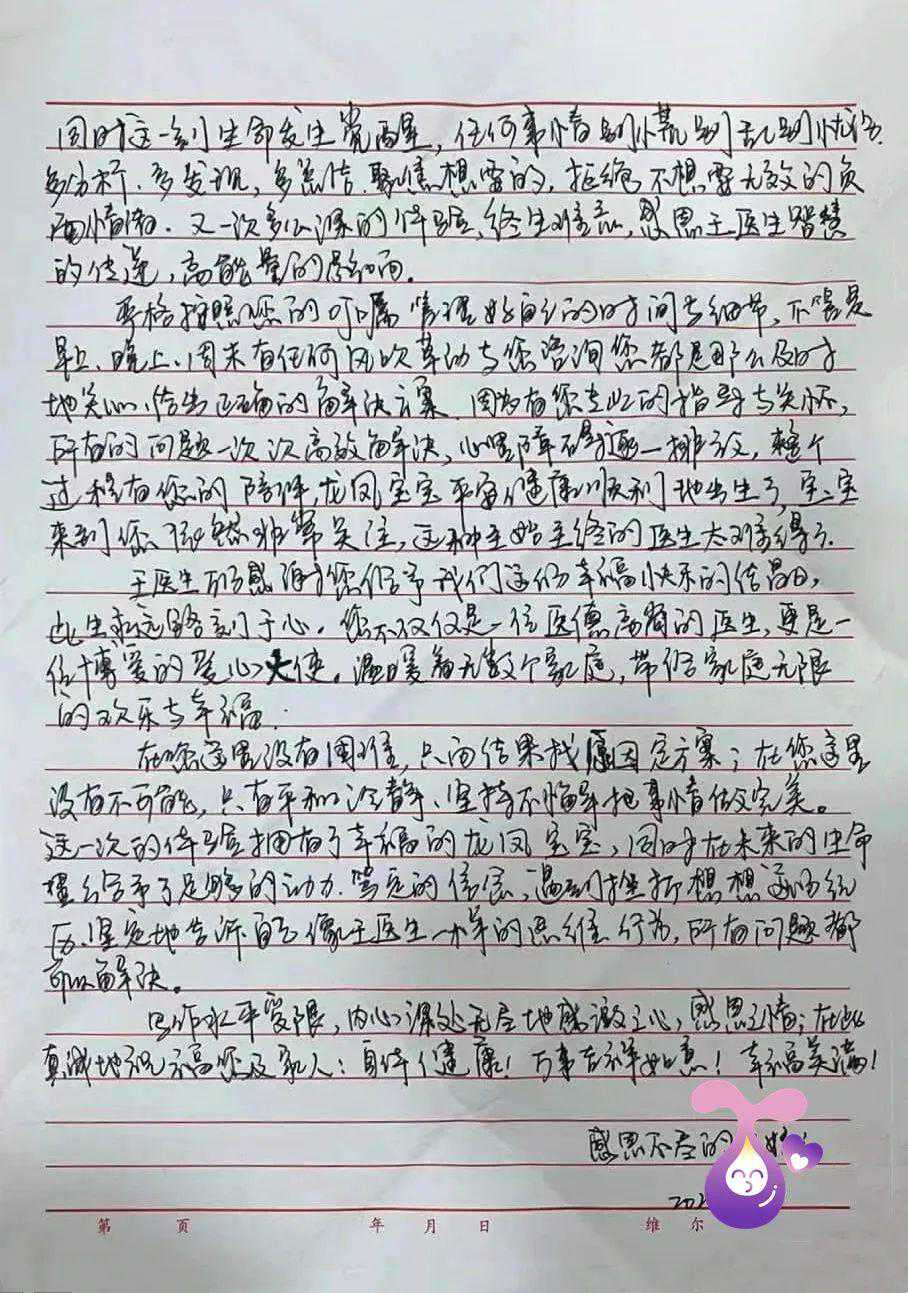 在这一生中荣幸遇到了您,实现了我们梦寐以求的心愿,龙凤胎宝宝。看着健康可爱活泼的宝宝们,常常想着王医生忙碌而瘦小的身影。这一份惊喜的收获是因为您,您的博爱,医学上的严谨、专注,永不言弃。