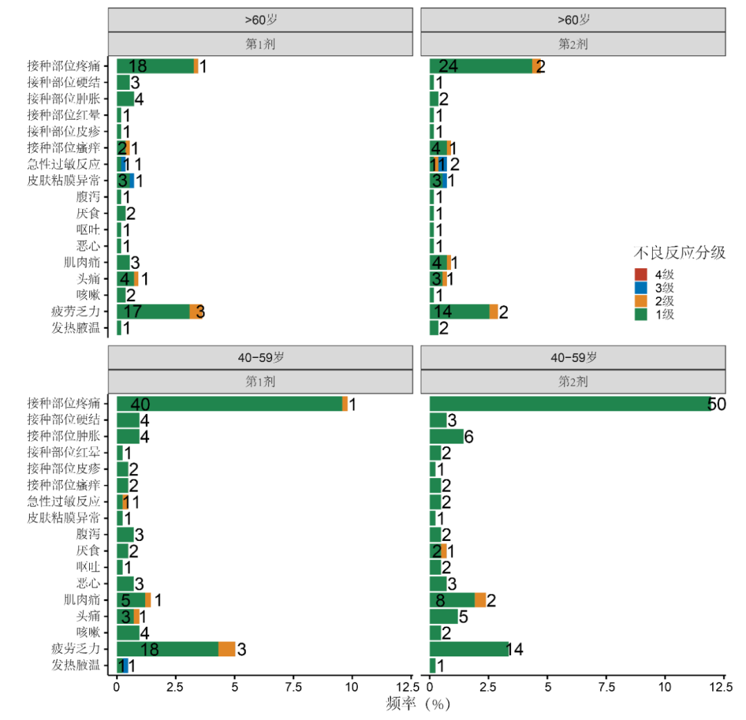 图5不良事件在不同剂次、年龄段的分布,图中数字为例次|文献[17]